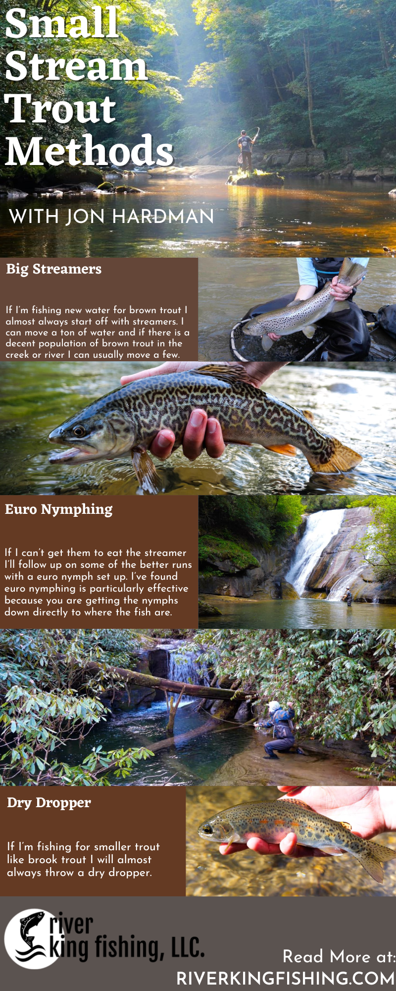 My top 3 methods for catching trout in my area are throwing streamers, euro nymphing, and using a dry dropper. If I’m fishing new water for brown trout I almost always start off with streamers. I can move a ton of water and if there is a decent population of brown trout in the creek or river I can usually move a few. If I can’t get them to eat the streamer I’ll follow up on some of the better runs with a euro nymph set up.